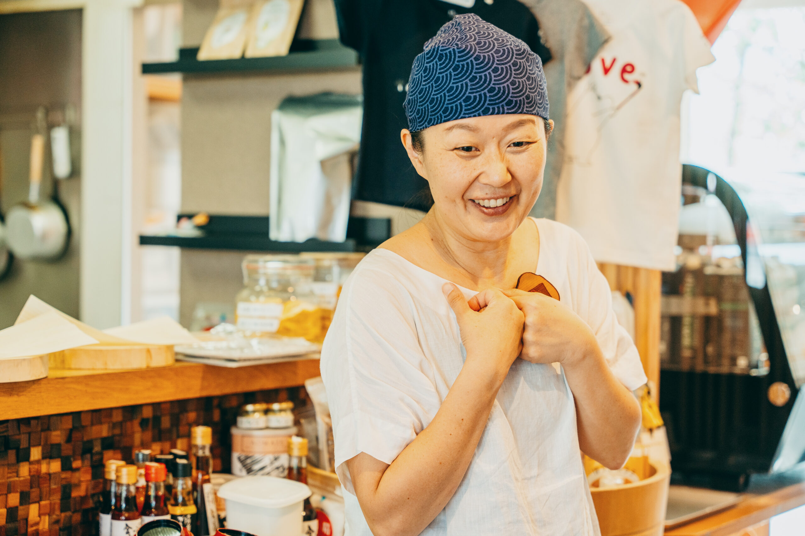 「おむすびや〜悠〜」店主。「あしもみ処〜尚〜」主宰。株式会社住所は地球プロジェクト代表取締役。明日香村在住。小学生2児の母。世界平和を目指して、ひとりひとりの心の平和をつくるためにおむすびを結んでいる。